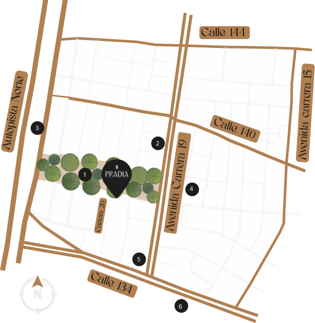 PRADIA es un proyecto residencial ubicado en el barrio Los Cedros, en la cra. 20 # 134a – 76. Se sitúa frente al Parque Nueva autopista, un espacio que se caracteriza por sus amplias y tranquilas zonas verdes.